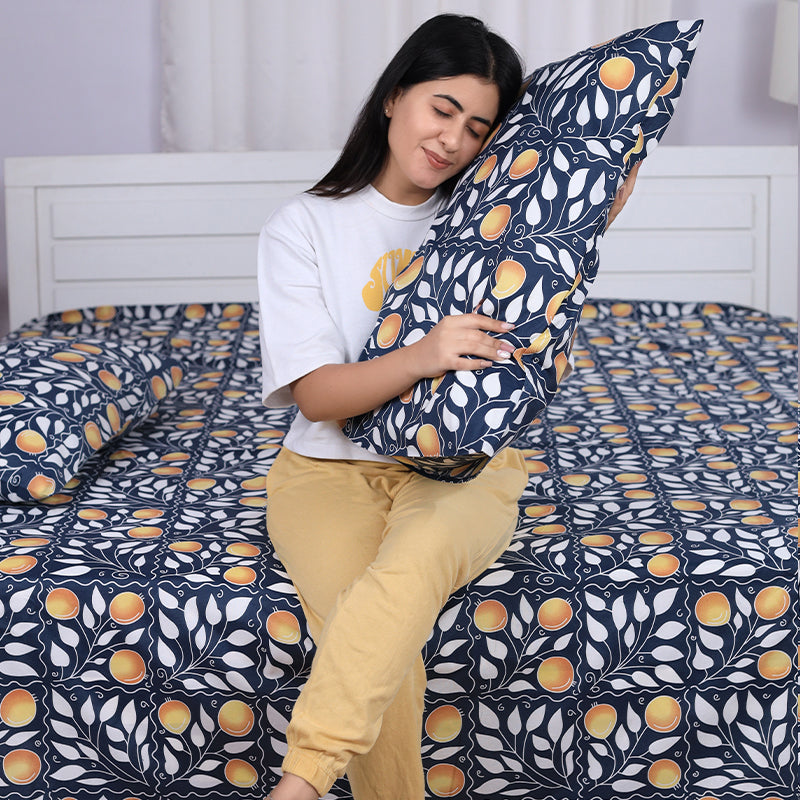 Bring home everyday comfort with the Clementine pattern Bedsheet, made from 100% pure cotton for a soft, breathable, and skin-friendly feel. Designed for daily use, this bedsheet keeps you cool and comfortable throughout the night while adding a fresh and elegant touch to your bedroom.