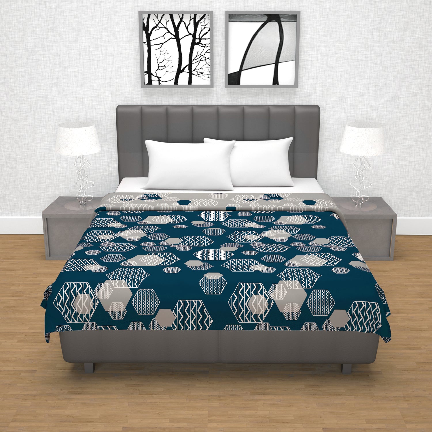 Whether you're relaxing after a long day or enjoying a peaceful night's sleep, this midnight grey geometric dohar offers comfort, style, and practicality all in one.