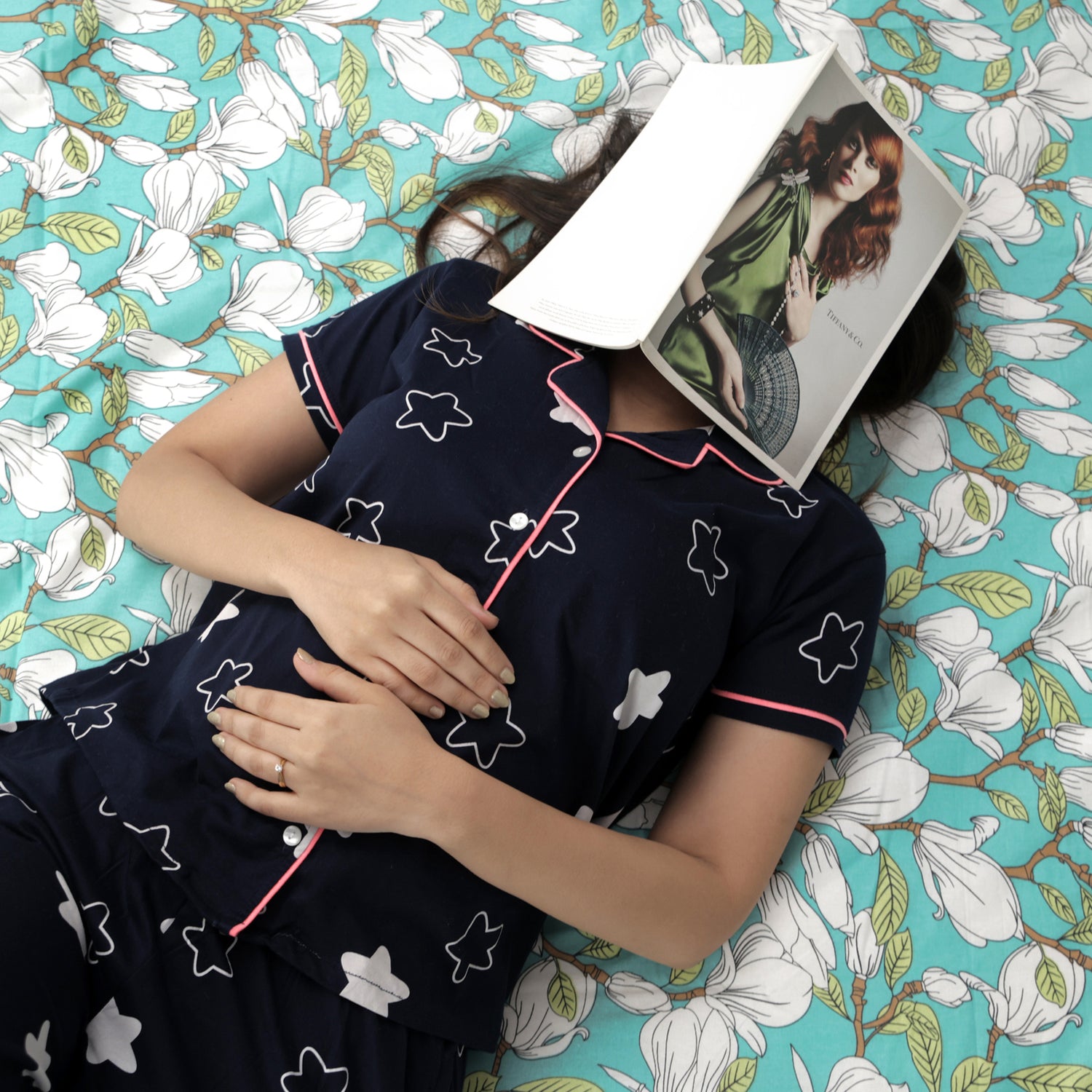 Crafted with soft cotton fabric, it feels gentle on the skin and offers breathable comfort for a restful sleep.