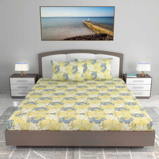210 TC Elegant Floral Gold King Size Bedsheet with 2 Pillow Covers