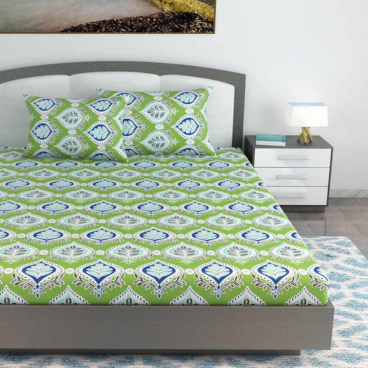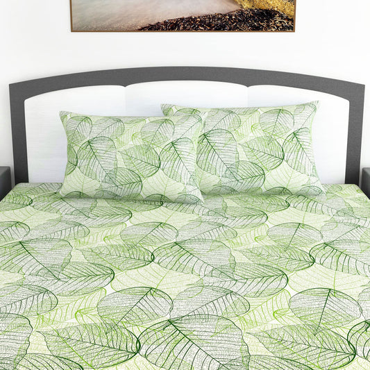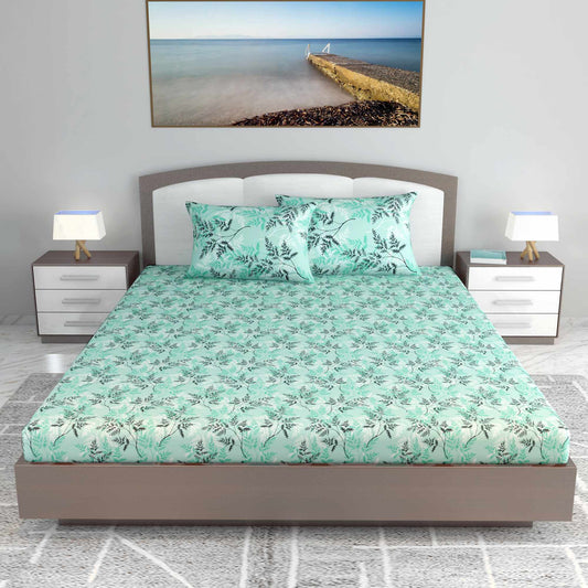 Lady Fern Floral 100% Cotton Bedsheet for King Size Bed - Green