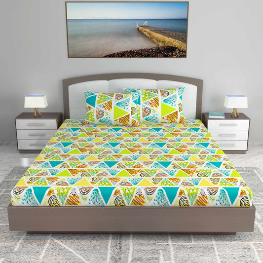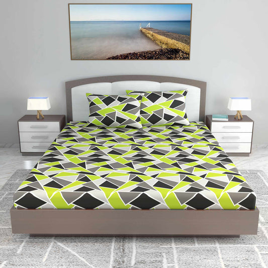 Triangle Lime Green and Grey Bedsheet for King Size Bed - 100% Cotton