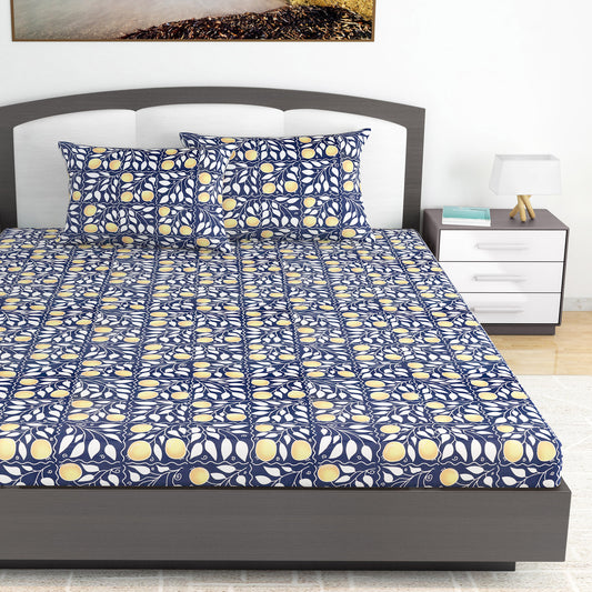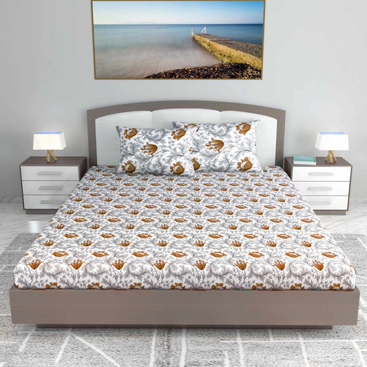210 TC Elegant Floral Gold King Size Bedsheet with 2 Pillow Covers