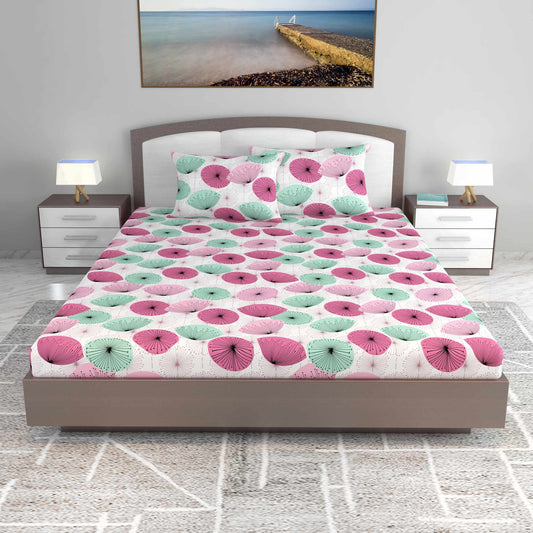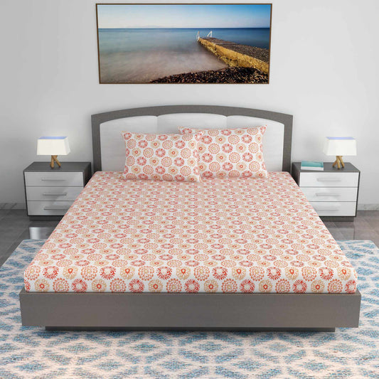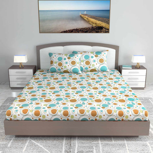 Doodle Round 100% Cotton Bedsheet for King Size Bed - Multicolor