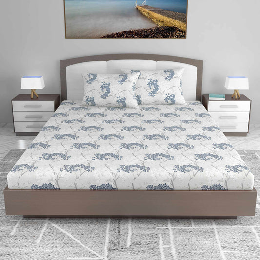210 TC Elegant Floral Grey King Size Bedsheet with 2 Pillow Covers