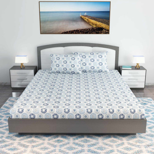 Triangle Blue and Grey King Size Bed Bedsheet - 100% Cotton