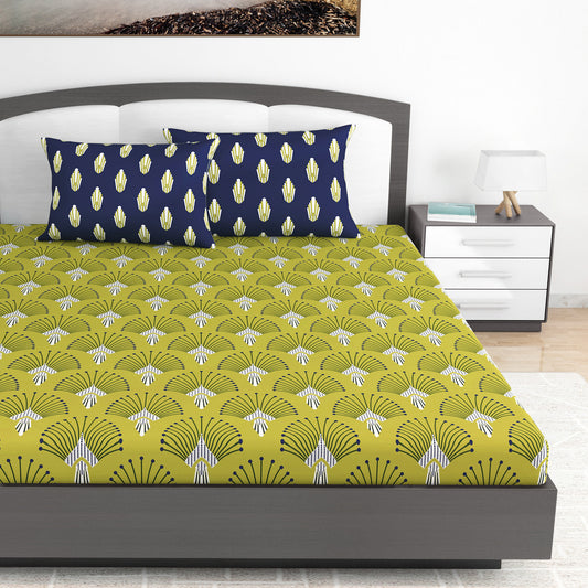 Lady Fern Floral Lime Green Bedsheet for King Size Bed - 100% Cotton