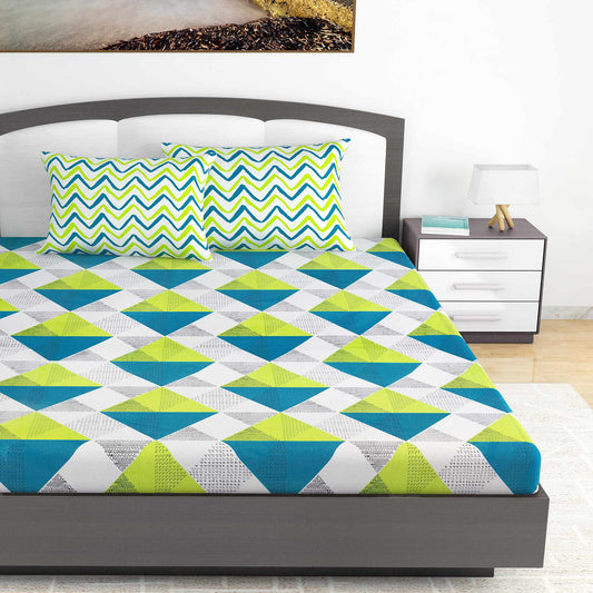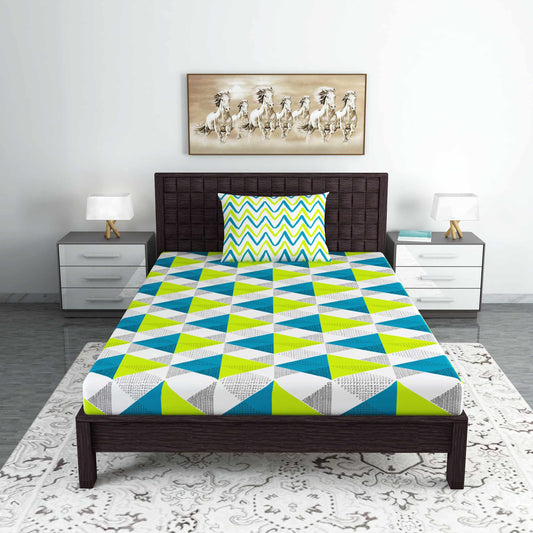 Triangle Green Elastic Fitted Double Bed Bedsheet