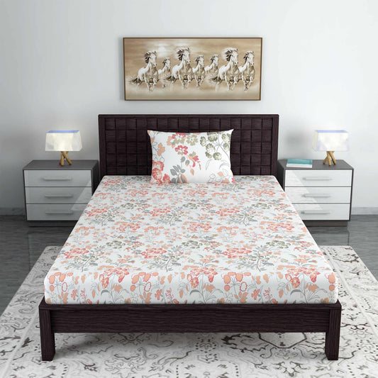 Vintage Floral 100% Cotton Bedsheet for Single Bed- Peach