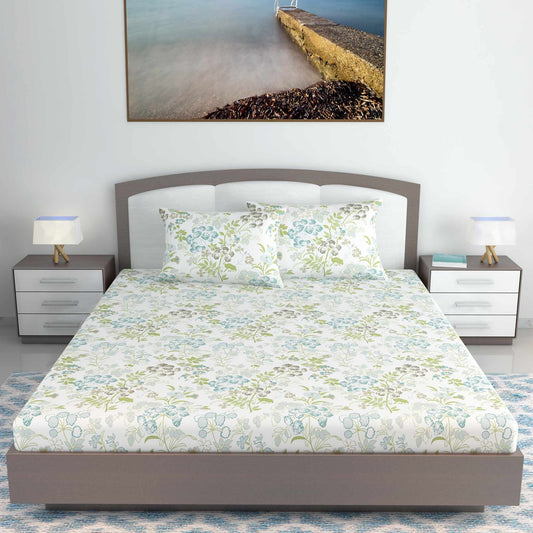 Vintage Floral 100% Cotton Bedsheet for Double Bed- Green