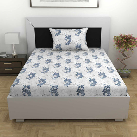 Grey and Blue Floral Print Elastic Fitted Combo Bedsheet For Single Bed