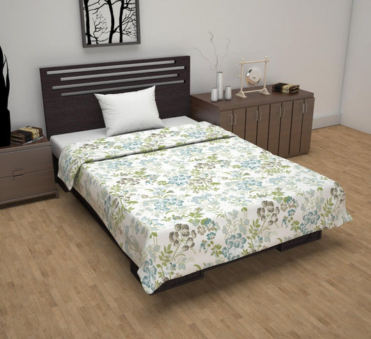 Vintage Floral Green and White 144 TC 100% Cotton All Season AC Dohar for Single Bed