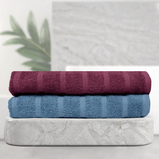 Burgundy and Light Blue 100% Cotton Set of 2 Combo 250 GSM Quick Dry Bath Towel