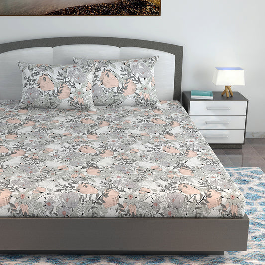 Green and Grey Floral Set of 2 Combo Bedsheet for King Size Bed