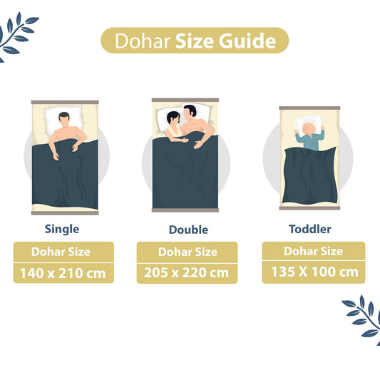 Our Dohars are made of two layers of cotton or microfiber fabric with a layer of flannel in the middle, ensuring they're strong and comfy.