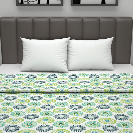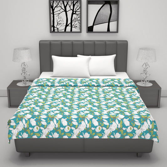 Floral White and Green 120 GSM Reversible Cotton Single Bed Dohar