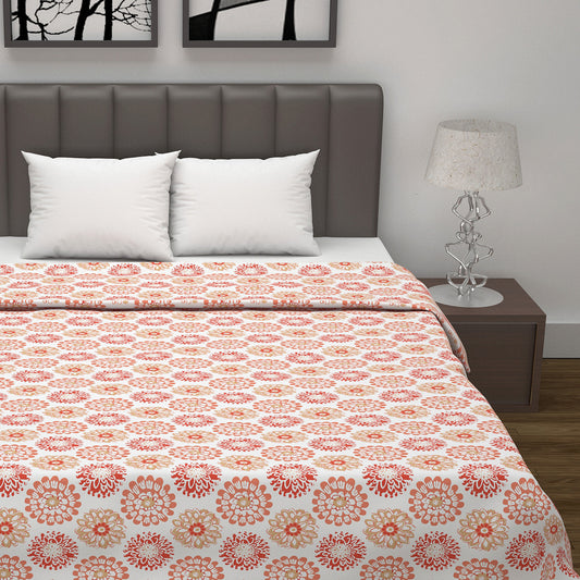 Vintage Floral Peach and White 144 TC 100% Cotton All Season AC Dohar for Double Bed