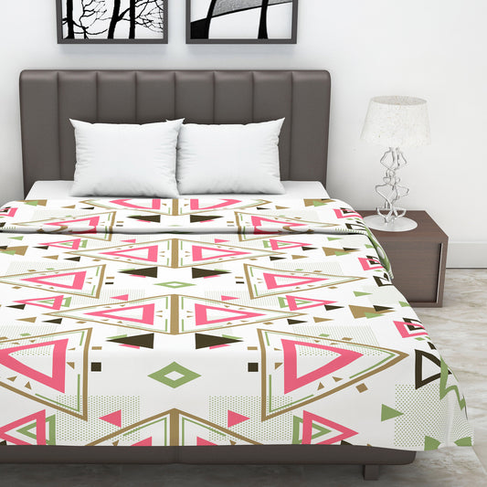 Pink and Brown 120 GSM Cotton Geometric Triangle Double Bed AC Blanket Dohar for All Season