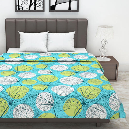Green and Blue 120 GSM Cotton Floral Double Bed AC Blanket Dohar for All Season