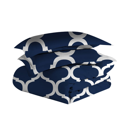 Microfiber Reversible Double Bed Queen Size Abstract Printed Duvet Cover, Dark Blue & Grey