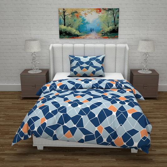 Microfiber Reversible Single Bed AC Duvet Cover with 1 Pillow Cover for Comforter Blue & Orange