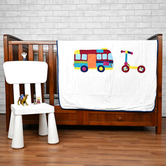 Bright White Embroidery 200 TC Cotton Ultrasoft Blanket for Kids