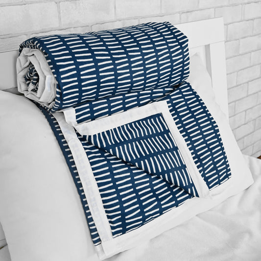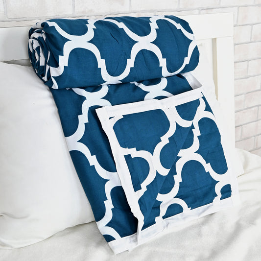 Geometric Navy Blue And White Microfiber Comfortable Single Bed AC Dohar