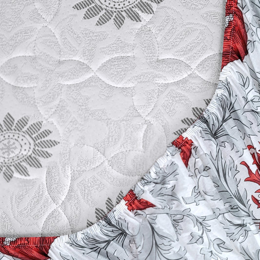 Tulip Floral Elastic Fitted Bedsheet for Double Bed - Grey and Red
