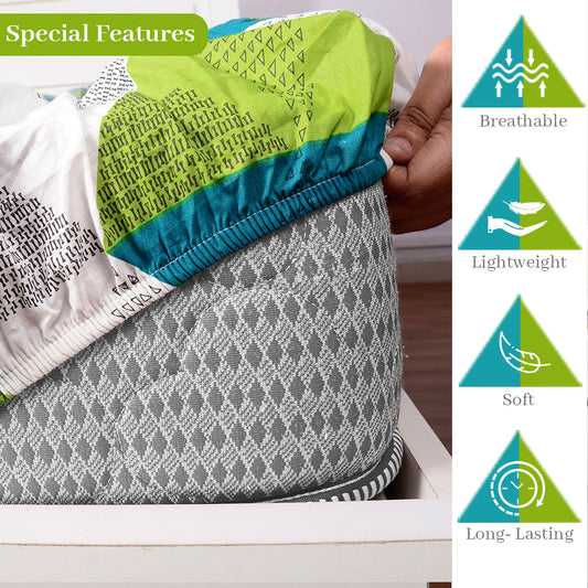 Triangle Green Elastic Fitted Double Bed Bedsheet