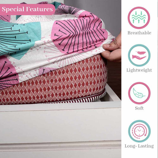 Opal Floral Printed Elastic Fitted Double Bed Bedsheet