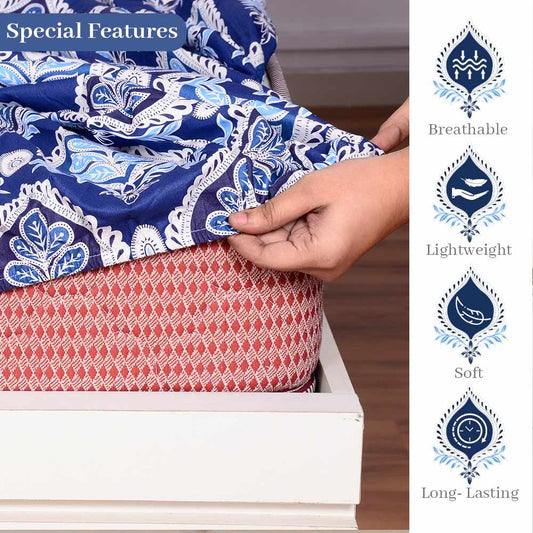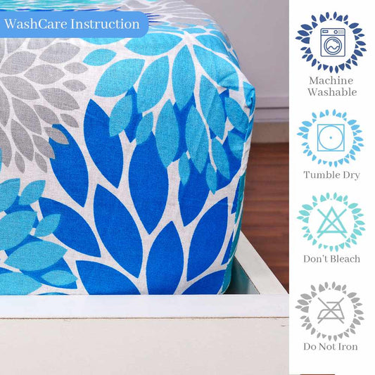 Blue Floral Elastic Fitted Double Bed Bedsheet