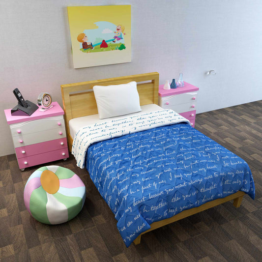 Blue Typography Letter Printed AC Quilt Comforter for Kids