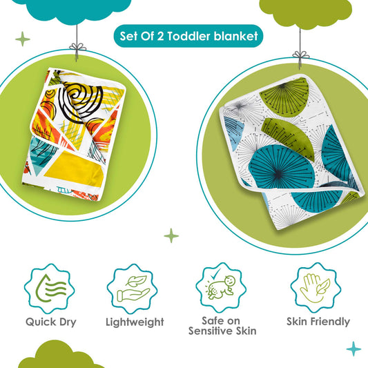 Orange and Multicolor Dohar Blanket Combo for Kids Under 04 Years 100% Cotton