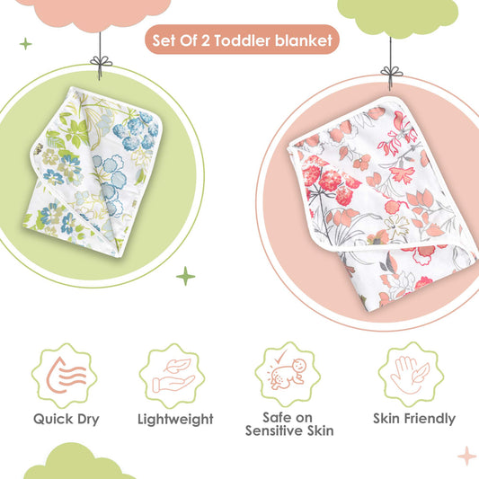 Green and Blue Floral 100% Cotton Baby Dohar Blanket Combo for New Born Under 04 Years