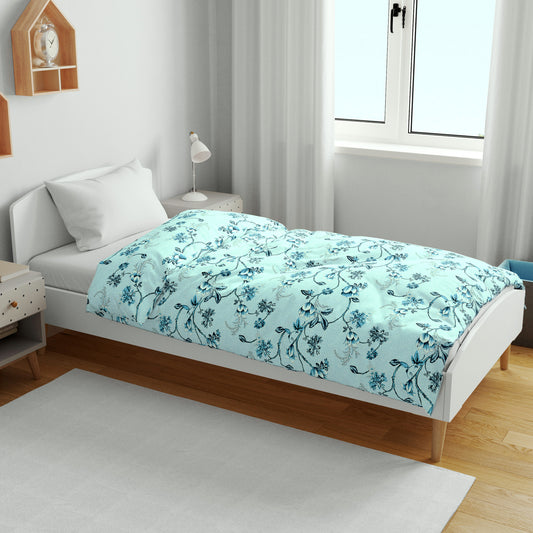 Frost Blue Floral Kids Single Bed Dohar - 120 GSM Cotton