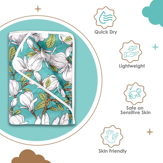 White And Green 144 TC 100% Cotton Floral Pattern Baby Single Bed AC Blanket Dohar for Kids