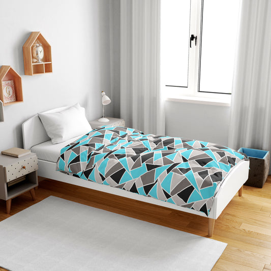 Aqua Grey Geometric Kids Single Bed Dohar – 120 GSM Cotton