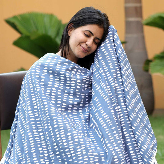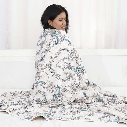 Block Print Sky Blue Lightweight Reversible Single Bed Dohar