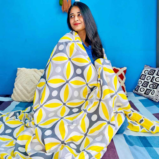 Yellow Abstract Print Cosy and Cool Microfiber Reversible Double Bed Dohar