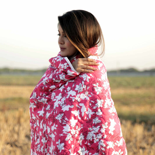 Floral Pink Style with Piping Border Microfiber Single Bed Dohar