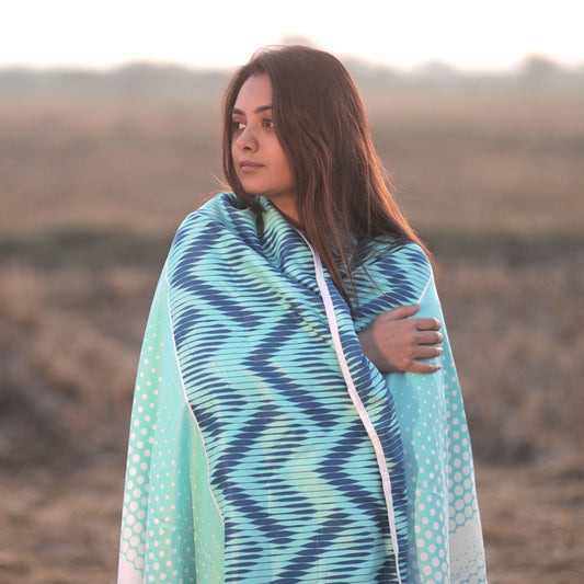 Blue Geometric Soft Silk Touch Microfiber Double Bed Dohar