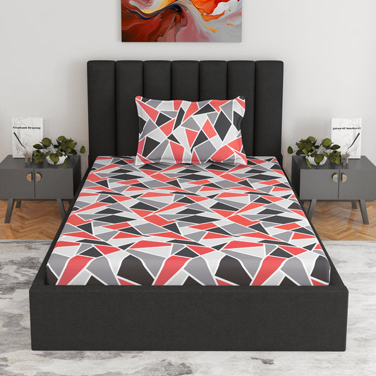 Triangle Red and Grey Print Single Fitted Bedsheet