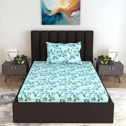 Blossom Haven Mint Deep Pocket Elastic Fitted Bedsheet For Single Bed