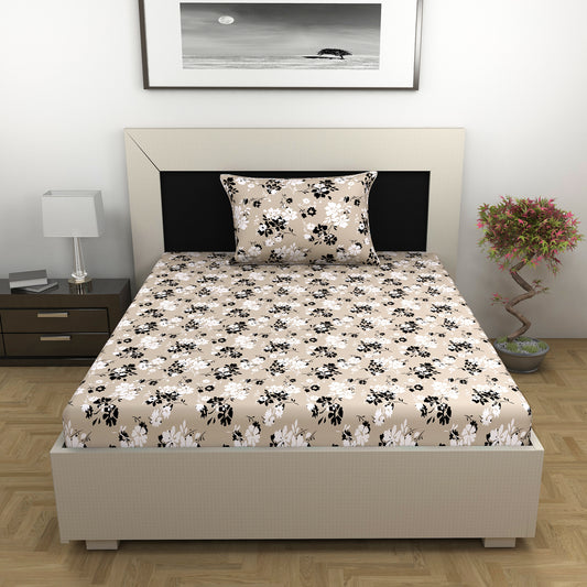 210 TC Elegant Floral Gold King Size Bedsheet with 2 Pillow Covers