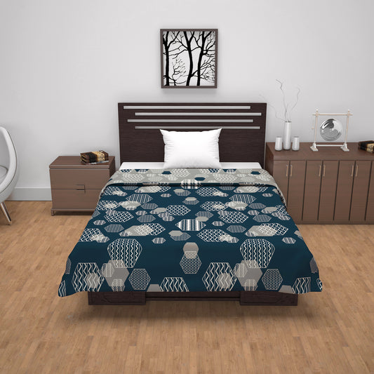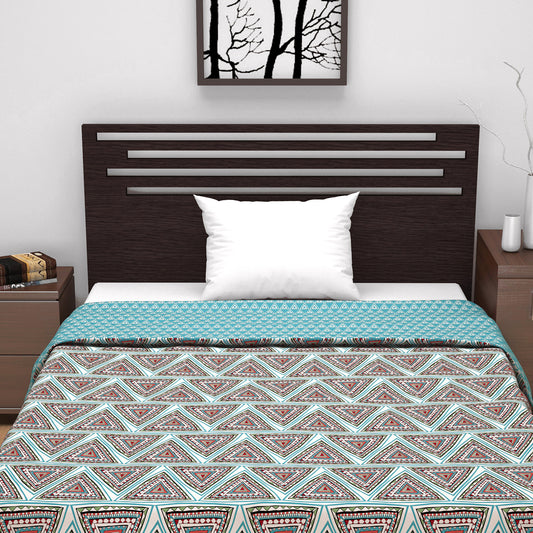 Turquoise Blue Geometric Single Bed Comforter – 120 GSM Microfiber