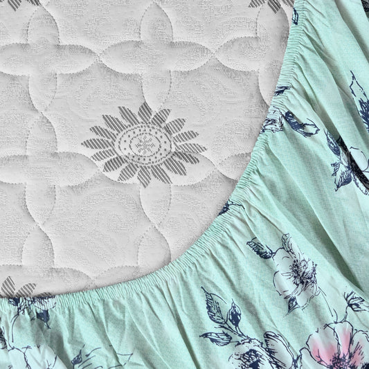 Mint Green Floral Cotton Elastic Fitted Double Bedsheet