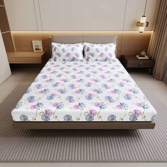 Blue Pink Floral 144 TC Cotton Double Bedsheet