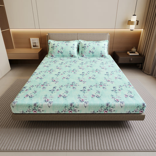 Mint Green Floral 144 TC Cotton Double Bedsheet
