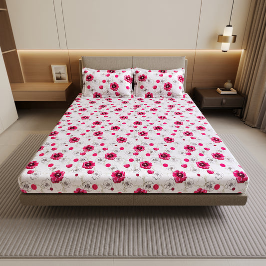 Pink Floral Cotton King Bedsheet