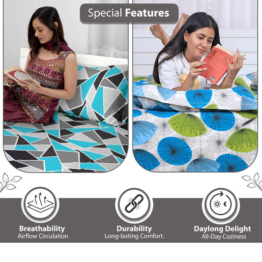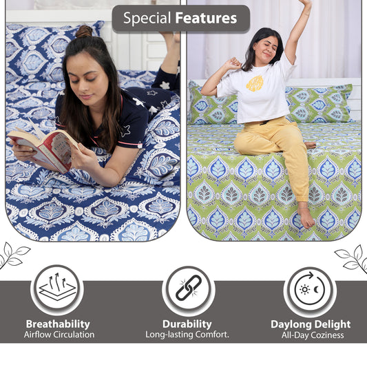 Green and Blue Printed Combo Bedsheet for Single Bed